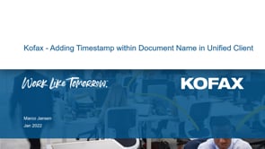 In our Kofax Unified Client(s) connected to ControlSuite Equitrac we only show the document name without a Timestamp.